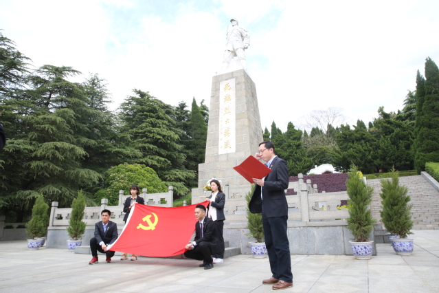 為深切緬懷革命烈士,傳承弘揚(yáng)紅色精神,扎實(shí)開(kāi)展好黨史學(xué)習(xí)教育,會(huì)展公司黨支部聯(lián)合南京市貿(mào)促會(huì)第七黨支部和六合區(qū)橫梁街道鐘林村黨總支于4月20日下午前往南京市愛(ài)國(guó)主義教育基地——桂子山烈士陵園,開(kāi)展以“學(xué)黨史緬懷先烈,踐初心砥礪前行”為主題的黨日活動(dòng)。市貿(mào)促會(huì)第七黨支部全體黨員、會(huì)展公司黨支部全體黨員、入黨積極分子和團(tuán)員以及鐘林村黨總支全體黨員參加了此次活動(dòng)。