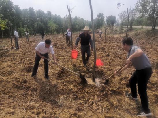 其后,大家來到公司位于浮山村苗圃的幫扶林,領導和公司黨員們一起,兩人一組將從農(nóng)戶新采購的苗木種植到位。大家有的扶樹正苗,有的揮鍬培土,有的踩土定植,配合十分默契,不一會苗圃基地再添一抹新綠。