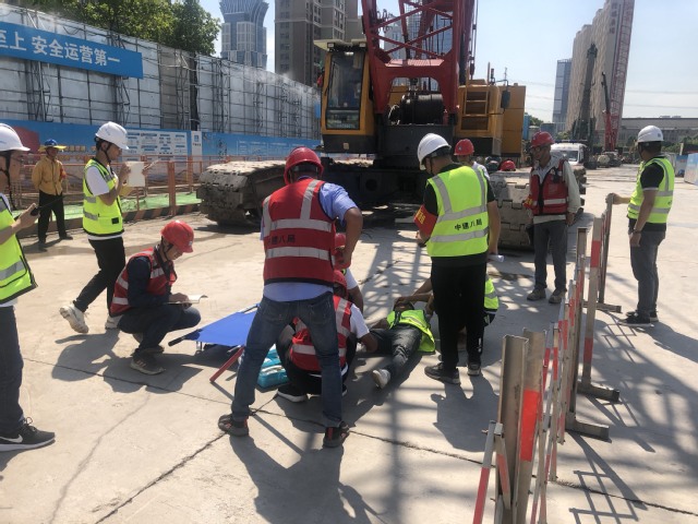 本次應(yīng)急演練活動模擬施工現(xiàn)場履帶式起重機在作業(yè)過程中由于鋼絲繩斷裂,吊物從高處掉落倒下,不幸將地面一名作業(yè)人員腳部砸傷的事故?,F(xiàn)場專職安全員發(fā)現(xiàn)后第一時間向應(yīng)急救援指揮部匯報,應(yīng)急救援指揮部立即啟動應(yīng)急預(yù)案,各應(yīng)急救援小組接到救援命令后,迅速跑向事故地點,對受傷人員開展救援工作,同時拉起警戒線,保護現(xiàn)場。救援人員按預(yù)案分工,有條不紊地實施清障、包扎、傷員擔架固定、運送上救護車等一系列動作。本次演練活動,增強了員工的安全操作意識,提高了快速反應(yīng)能力、應(yīng)急救援能力以及協(xié)同作戰(zhàn)能力。