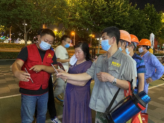 進(jìn)入工作現(xiàn)場后,志愿者們迅速熟悉掌握工作要求,主動溝通協(xié)調(diào)、協(xié)助引導(dǎo)秩序、指導(dǎo)幫助登記掃碼、耐心解答疑問……大家分工明確、緊張有序地全力配合醫(yī)護(hù)人員開展核酸檢測工作,炎熱夏夜,蚊蟲叮咬,絲毫不影響大家的工作熱情,在大家的共同努力下,有效推進(jìn)了檢測速度,減少了市民等待時間,用實際行動為社區(qū)群眾筑起一道生命健康防線,也讓黨旗在疫情防控一線高高飄揚(yáng)。(擬稿人:王慧、于桐、武照嬌)