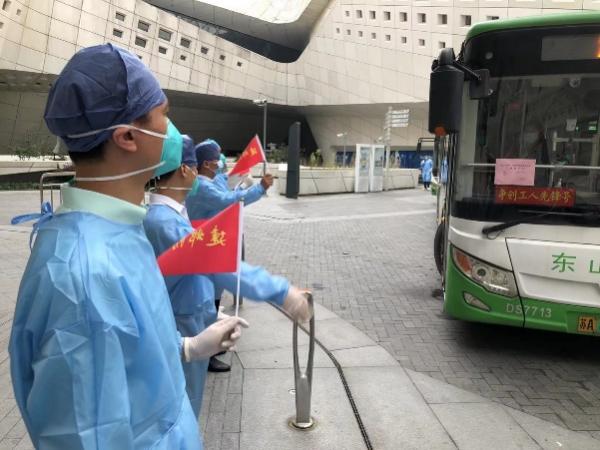 圖▲國(guó)青酒店管理層及員工送別集中醫(yī)學(xué)觀察的市民朋友