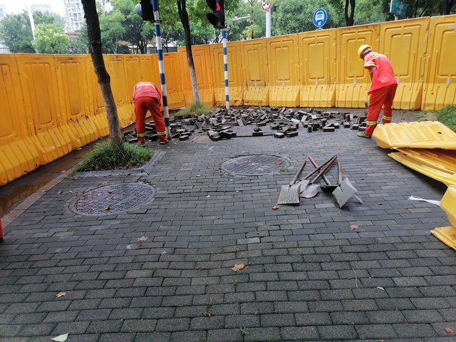 首先,對(duì)路面進(jìn)行了專項(xiàng)維修。在人行道上,針對(duì)大面積道路瀝青病害集中銑刨攤鋪,對(duì)松動(dòng)、不平的人行道及盲道設(shè)施進(jìn)行維修加固,使用隱形井蓋的檢查井設(shè)計(jì);在車行道上,采用無車轍瀝青鋪裝等創(chuàng)新技術(shù)進(jìn)行修復(fù),整體處理后道路煥然一新,車輛、行人通行時(shí)順暢、平穩(wěn)。