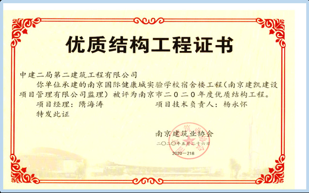 2021年12月6日,中國(guó)施工企業(yè)管理協(xié)會(huì)公布2020-2021國(guó)家優(yōu)質(zhì)工程獎(jiǎng)獲獎(jiǎng)名單,河西集團(tuán)新城公司所屬南京河西工程項(xiàng)目管理有限公司代建的南京國(guó)際健康城實(shí)驗(yàn)學(xué)校項(xiàng)目喜獲該獎(jiǎng)項(xiàng)。國(guó)家優(yōu)質(zhì)工程獎(jiǎng)設(shè)立于1981年,是經(jīng)國(guó)務(wù)院確認(rèn)的我國(guó)工程建設(shè)領(lǐng)域設(shè)立最早,規(guī)格最高,跨行業(yè)、跨專業(yè)的國(guó)家級(jí)質(zhì)量獎(jiǎng)。