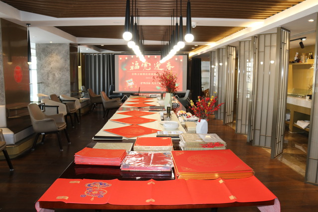寫春聯(lián)、貼春聯(lián)是中國(guó)春節(jié)的傳統(tǒng)習(xí)俗,也是辭舊迎新過(guò)大年的一種象征。為弘揚(yáng)中華書法藝術(shù)與傳統(tǒng)節(jié)日文化,給市民、住店客人送上新春祝福。近日,河西集團(tuán)青奧城公司金帆萬(wàn)源酒店開展“?;⒂骸?022新年納福公益筆會(huì),來(lái)自南京的書畫名家應(yīng)邀出席。