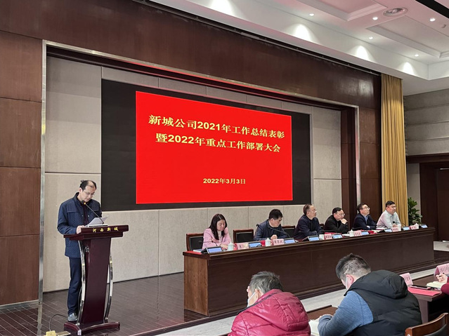 3月3日下午,新城公司召開2021年工作總結(jié)表彰暨2022年重點工作部署大會,河西集團黨委副書記、董事繆昌根,新城公司領(lǐng)導班子成員及全體員工參加。