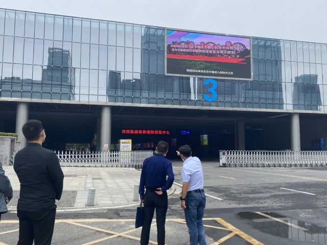 5月26日上午,市司法局黨組成員、副局長(zhǎng)賀慶帶隊(duì)蒞臨集團(tuán)就法治宣傳工作開(kāi)展情況進(jìn)行調(diào)研指導(dǎo)。在集團(tuán)副總經(jīng)理、黨委委員曹志堅(jiān)陪同下,調(diào)研組一行先后赴國(guó)際博覽中心、青年文化體育公園、魚(yú)嘴濕地公園白鷺廣場(chǎng)等地,對(duì)人群集中地段的戶外大型電子顯示屏進(jìn)行實(shí)地考察,現(xiàn)場(chǎng)觀看了民法典公益廣告及宣傳標(biāo)語(yǔ)等播放情況?,F(xiàn)場(chǎng)調(diào)研后,曹志堅(jiān)對(duì)集團(tuán)法治文化環(huán)境及建設(shè)情況進(jìn)行了詳細(xì)匯報(bào)。
